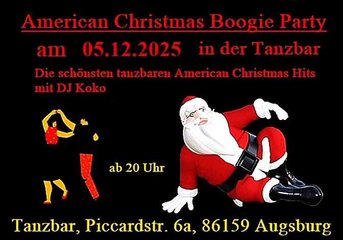 Nach dem großen Erfolgen der letzten Jahre natürlich auch 2025 wieder die beliebte „American Christmas Boogie Party“ in der TANZBAR Augsburg.(Piccardstr. 6a)