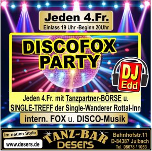 Tanzen zu Fox und Disco-Musik. Zusätzlich mit Tanzpartner-Börse und Single-Treff der Singlewanderer Rottal-Inn.
