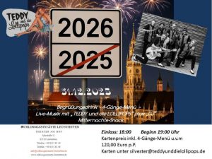 Das ursprüngliche Angebot bzgl. 4-Gänge Menü und Musik mit uns als Band nebst DJ bleibt natürlich bestehen, der Preis bleibt ebenfalls bei 120 Euro p.P.