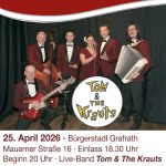 Boogie Ball mit der Liveband Tom & The Krauts. Beginn: 20h Einlass: 18:30h Eintritt: 20 h Karten nur im Vorverkauf! – und Platzreservierung: 08144 / 997494 oder 01578 / 3281159 Lydia Flick